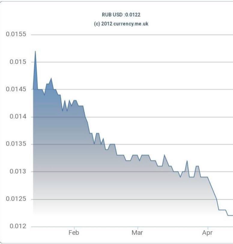 عبدالناصر همتی، رئیس اسبق بانک مرکزی با انتشار نموداری از سقوط ارزش پول ملی روسیه به پایین ترین حد ممکن خود در یکسال گذشته خبر داد و نوشت : کسانی که الگوی بانک مرکزی روسیه را تجویز میکردند، چه توضیحی دارند؟